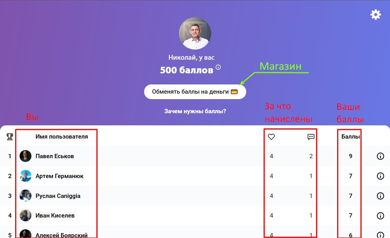 3) Баллы обновляются раз в 5 минут, поэтому вы можете не увидеть их прибавки сразу после проявления активности (проверьте чуть позже)
